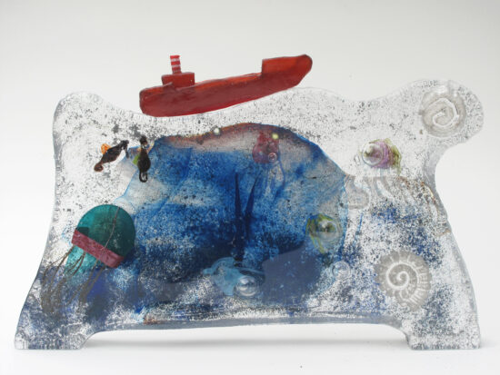 MARJAN SMIT (1958, Amersfoort) maakt glasobjecten waar je vrolijk van wordt. Ze giet vloeibaar glas van 1240 graden Celsius in een zandmal: zo simpel is de basis. Maar in stoere vormen met fenomenale kleuren. Met zandsculpturen en aan de brander gemaakte inlays, die bijdragen aan het sprookjesachtige karakter van haar glasobjecten. In de glasobjecten van Marjan Smit zie je de professionele graficus, die al meer dan 30 jaar droge naald etsen maakt. Dezelfde verhalen, de zelfde beeldtaal uit haar grafiek zie je terug in haar glas.