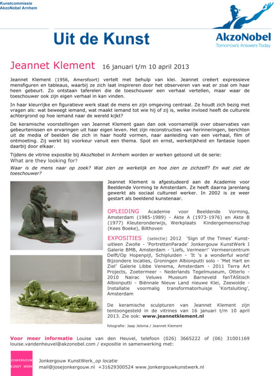 Uit-de-Kunst informatie pagina naar aanleiding van vitrine exposities – sinds 2005 – bij AKZO Nobel Arnhem met de Kunstcommissie. opmaak | beeldbewerking | informatie tekst | bemiddeling